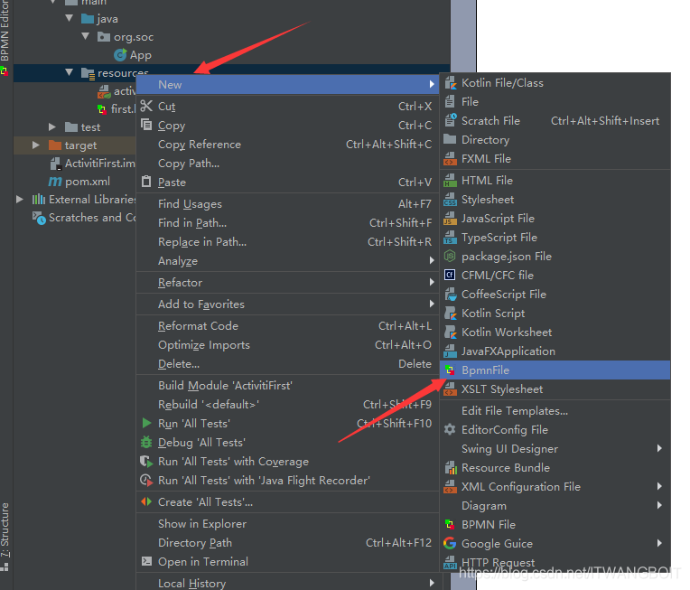 4:重启IDEA之后,即可看到可以创建bpmn文件了