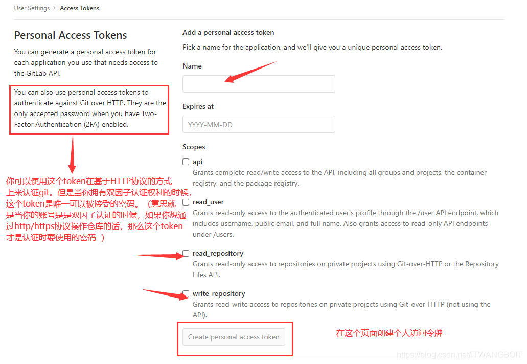 2:从以上的错误信息来看,我输入的账号和密码没有被成功验证,让我创建一个个人访问令牌,来用于认证,按提示的网址打开,如下图