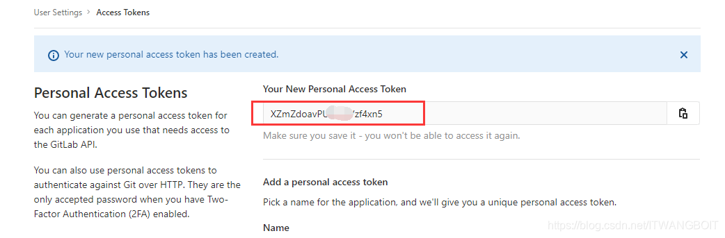 3:创建好的个人访问令牌如下,需要自己保存好,关闭页面后就找不到了,但是可以重新创建新的