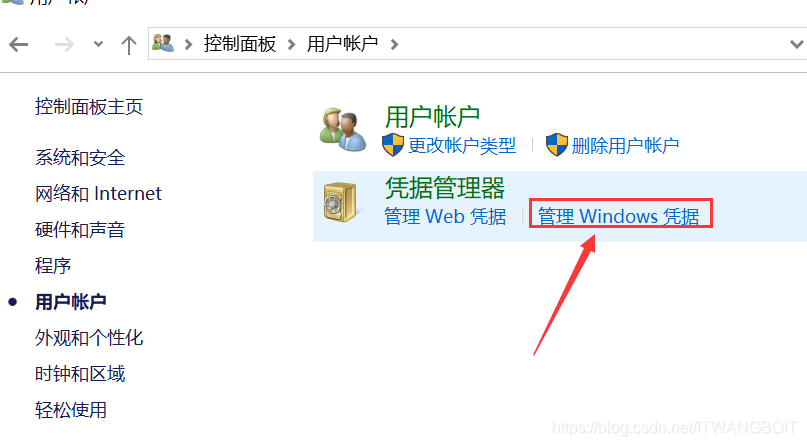 4:新的认证密码已经创建好,可以用于参与认证;但是由于我们已经输入过一次账号和密码了,而且windows会替我们保存下来,所以我们再次操作仓库时,不会提示重新输入密码,会用保存的错误密码再次替我们认证;所以我们需要先删除windows替我们保存的账号和密码,然后再次操作仓库时,会提示重新输入新的密码,从而才能成功认证;windows保存的账号密码在下图中: