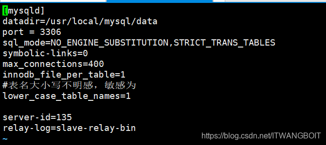 server-id=135 //服务器唯一id,可以使用ip最后一个段,只要不重复即可