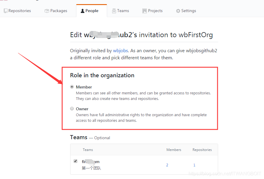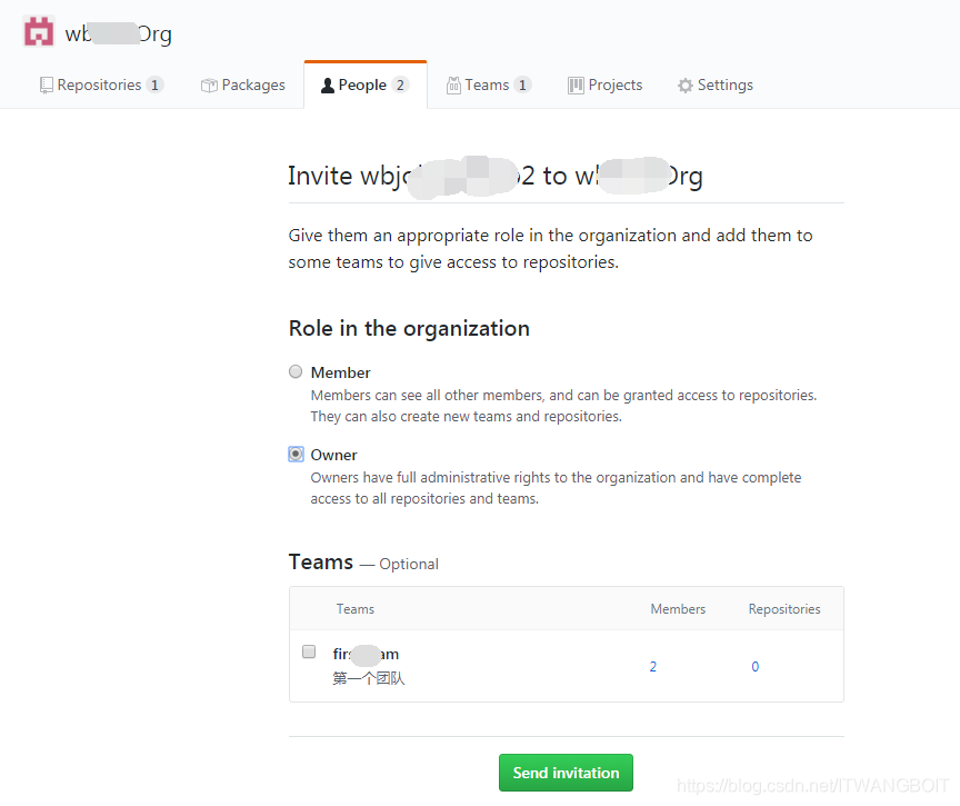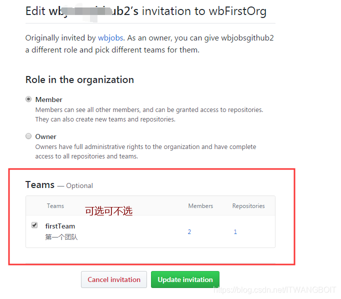 3:在邀请member时,可以给member分配其在组织内的角色,Owner或者Member。