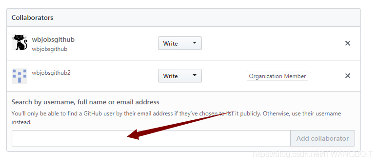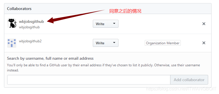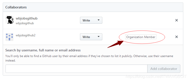 (1):选择的是organization内的自由人员,则直接可将其添加到Collaborators中。