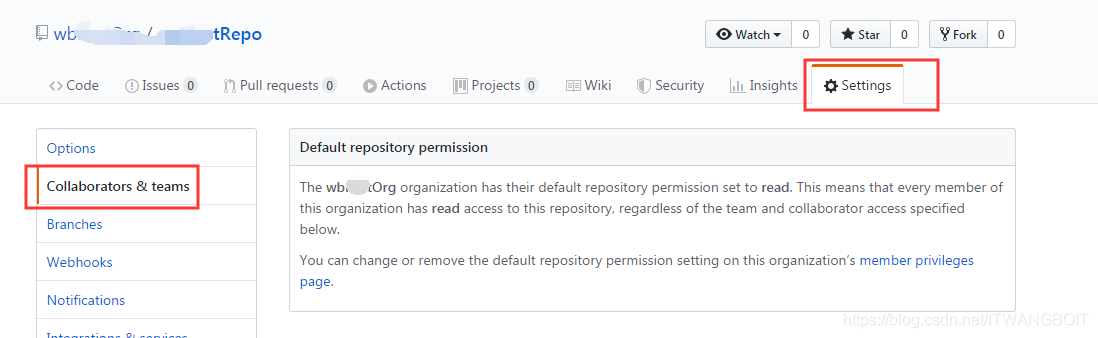 1:在组织内创建仓库的过程就不再描述;下面描述为organization内的repository分配Teams和Collaborators。