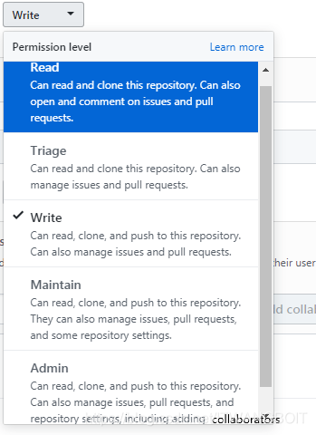 4:需要为分配给仓库的Teams和Collaborators分配权限,具体的权限如下: