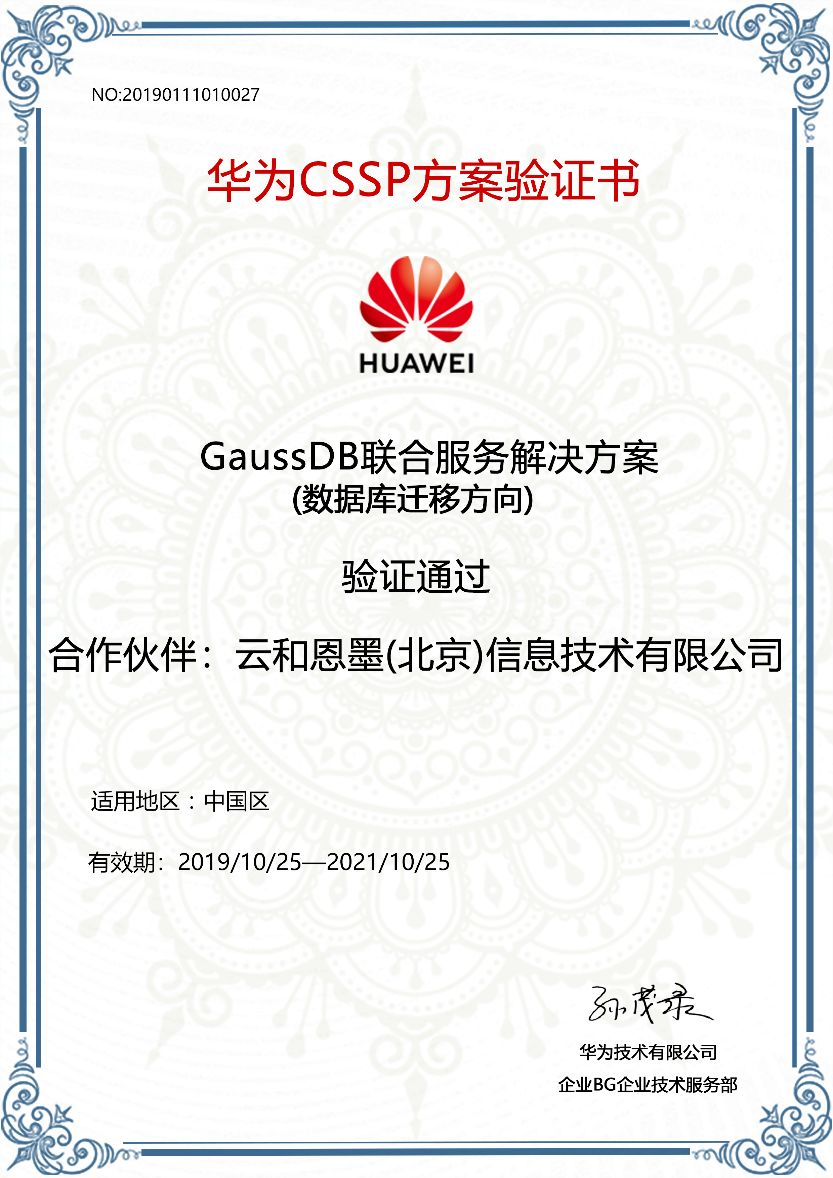 基于云和恩墨与华为在数据库领域的共同理解和不懈投入,经过对于GaussDB的深入研究和实践探索,云和恩墨在去年10月成为国内首家华为GaussDB CSSP(认证服务解决方案伙伴)。这意味着云和恩墨可以为GaussDB数据库迁移服务提供解决方案,与原厂服务形成互补,从而为客户使用GaussDB提供更加完善的服务能力。