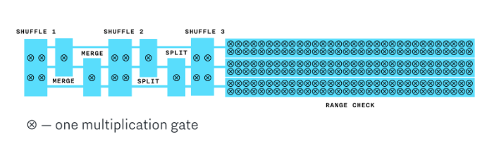 For the full sample code of the 2-shuffle gadget, including tests, see our GitHub repo. For an overview of how and why we implemented constraint system proofs, read our blog post here. To see the math behind constraint system proofs, read our R1CS proof notes.