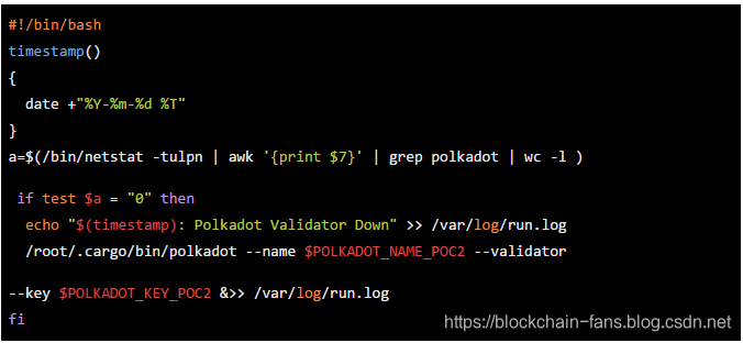 要触发的脚本(monitorValidator.sh)将检查是否没有运行polkadot进程