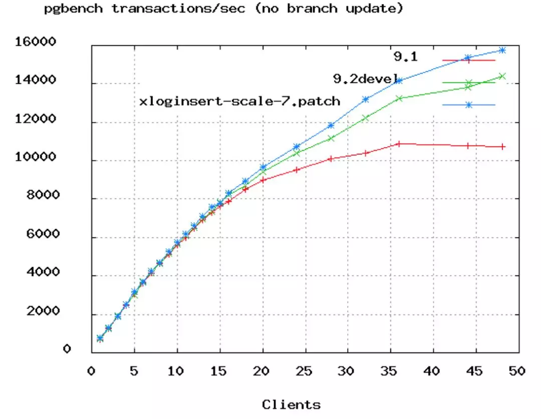 上图是 PostgreSQL 的基准性能测试数据,从图中我们可以看到,TPS 在连接数达到 50 时开始变缓。回过头来想下,在上面 Oracle 的性能测试视频中,测试人员们将连接数从 2048 降到了 96,实际上 96 还是太高了,除非你的服务器 CPU 核心数有 16 或 32。