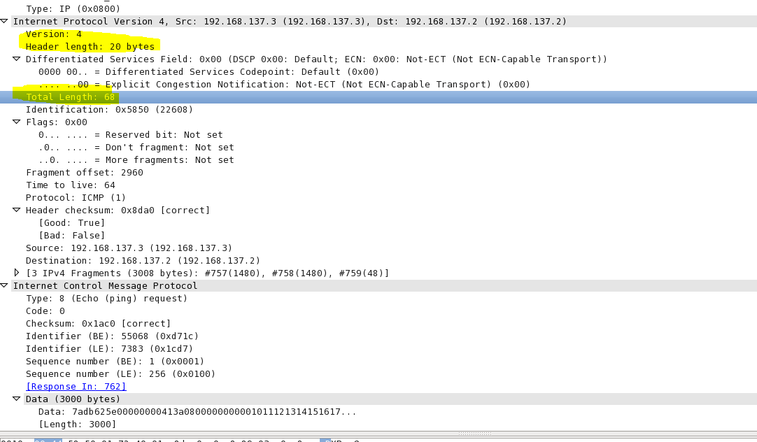 node2:/root#ping -c 1 -s 3000 192.168.137.2