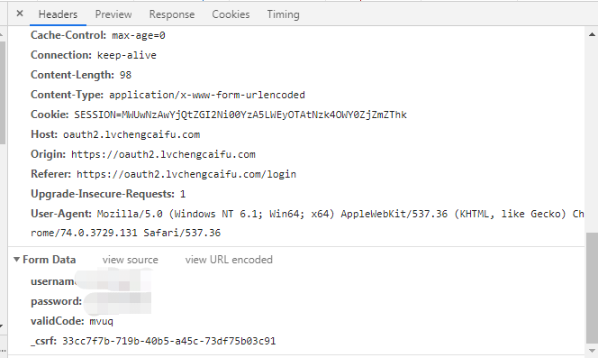 data = {'username': '1111', 'password': '2222@', '_csrf': token,'validCode':code}