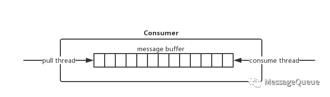在消息中间件的Consumer中会有一个Buffer来缓存从Broker获取的消息,而用户的消费线程从这个Buffer中获取消费来消息,获取消息的线程和消费线程通过这个Buffer进行数据传递。