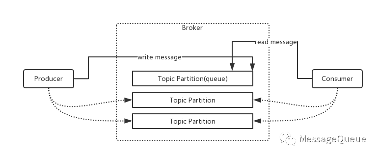 为了便于理解,上面的队列模型中仅仅将消息的一个写入队列抽象成一个Topic Partition,但在实践中这是不够的。