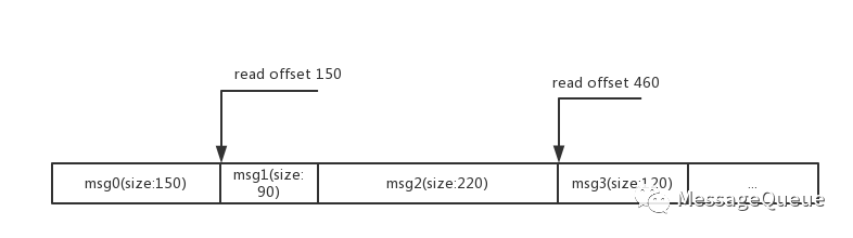 需要多次读取队列才能获取一条消息(先按照存储协议读取数消息大小,再按照偏移量+大小读,读取一条完整的消息);