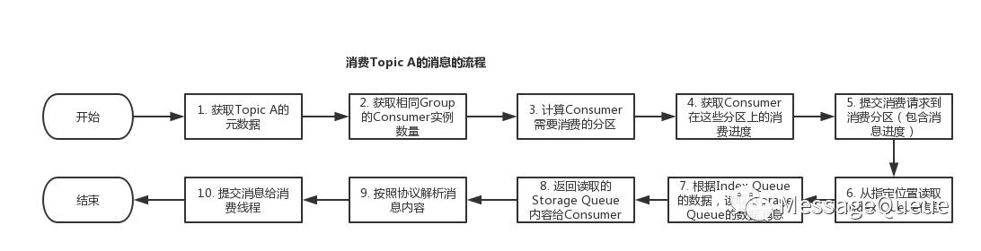 Consumer端流程包括1-5及9、10,6-8位Broker端流程。
