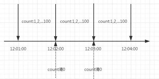 这里需要注意的是,存在一个时间临界点的问题。举个栗子,在12:01:00到12:01:58这段时间内没有用户请求,然后在12:01:59这一瞬时发出100个请求,OK,然后在12:02:00这一瞬时又发出了100个请求。这里你应该能感受到,在这个临界点可能会承受恶意用户的大量请求,甚至超出系统预期的承受。