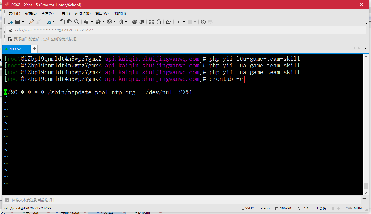 使用CronTab定时执行php,执行命令,crontab -e,之后就会打开一个文件