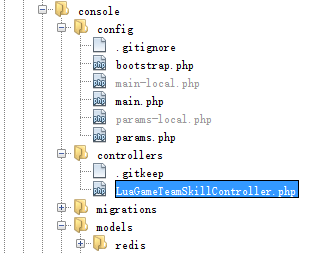 、复制vendoryiisoftyii2consolecontrollersCacheController.php至consolecontrollersLuaGameTeamSkillController.php,如图1