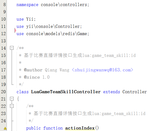 运行 ./yii lua-game-team-skill,成功运行,如果在执行过程中提供的路由不包含路由的方法ID,将执行默认操作,即actionIndex()方法