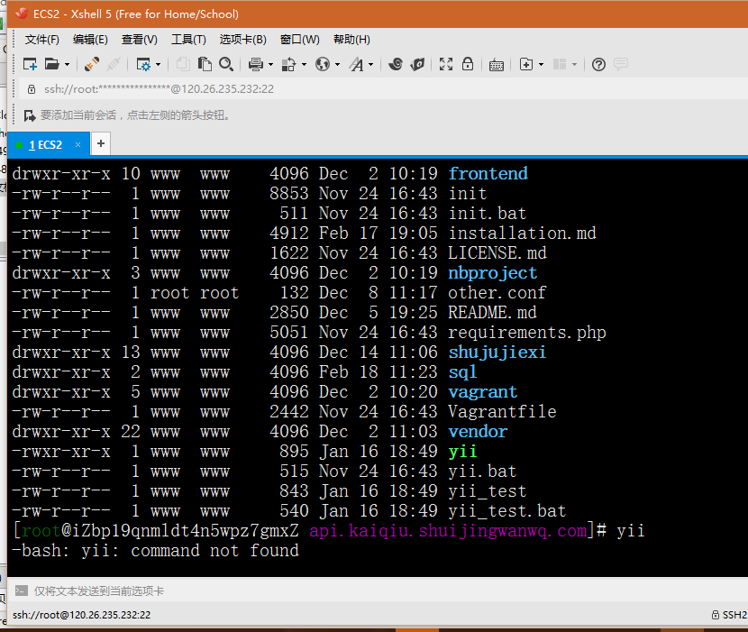 程序上传至CentOS 7上,在根目录下运行yii,报错-bash: yii: command not found