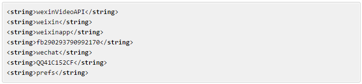 被String标签所包含的就是微信的URL Schemes: