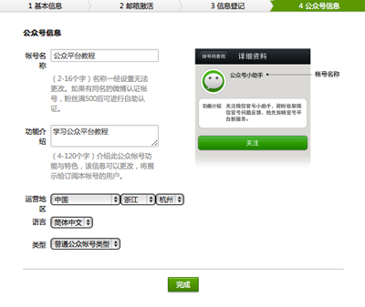 功能介绍这块可以先随便写个,后期可以随时修改,账号类型选择普通公众账号。