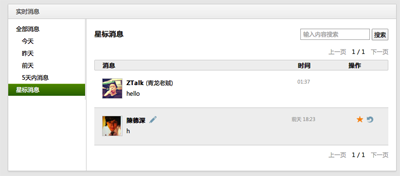 星标消息。点击可将消息设置为星标消息,标注成功后图标会变为橙色五角星,并且该消息将永久保存在星标消息栏中,适用于一些重要的用户消息保存。如下图