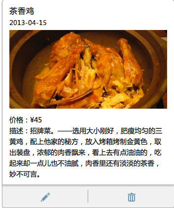 每个菜品是一个图文消息,标题为菜品名称,封面图片为菜品图片,菜品介绍和价格放摘要,如下图: