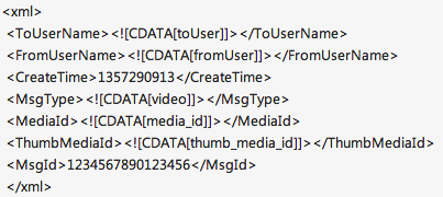 MediaId:视频消息媒体id,可以调用相应接口获取内容