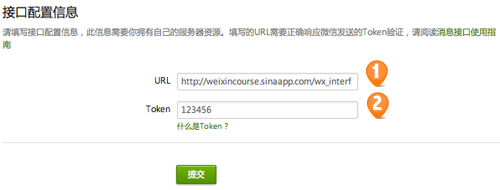 修改保存后,回到微信公众平台的开发模式,点击“成为开发者”按钮,然后会到“接口配置信息”页面,如下图:
