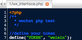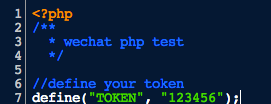 那些斜杠和星号的是注释,可以看到第6行的注释英文是“define your token”,也就是说第7行的代码功能是定义微信公众平台与SAE应用通讯时约定的一个秘钥。