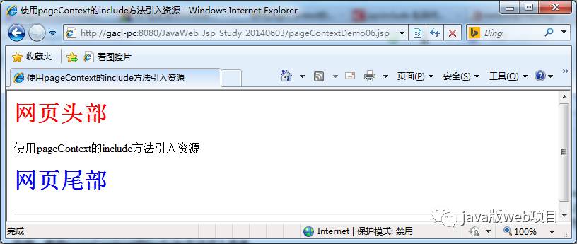 在实际开发中,使用pageContext的include方法引入页面这种做法也很少用,一般都使用jsp:include标签引入资源,因此这种做法了解一下即可。