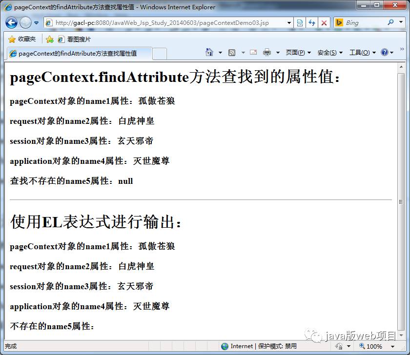 8 pageContext.setAttribute("name1", "孤傲苍狼");
