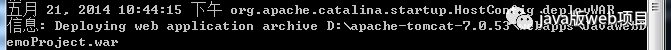 Tomcat服务器启动后会自动"Deploying web application",将这个war文件解压缩,如下图所示: