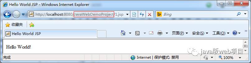 此时Tomcat服务器就会自动为JavaWebDemoProject这个JavaWeb应用映射一个同名的虚拟目录"/JavaWebDemoProject",然后就可以使用浏览器访问这个JavaWeb应用的资源了,如下图所示: