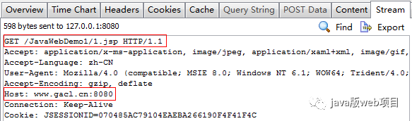 这就是浏览器向Web服务器发请求时向服务器传输的数据,解释一下"GET /JavaWebDemo1/1.jsp HTTP/1.1"这里面的内容,