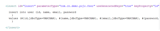 可以通过Mybatis封装数据操作,如下面的例子,实现了IUserDao中的insert接口,参数类型为User,将User插入数据库User表中