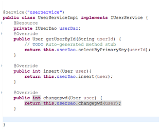 调用Dao的方法,实现我们所需要的操作,供Controller使用。