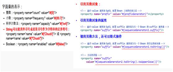 语法类似于 EL:SpEL 使用 #{…} 作为定界符,所有在大框号中的字符都将被认为是 SpEL,SpEL 为bean 的属性进行动态赋值提供了便利。
