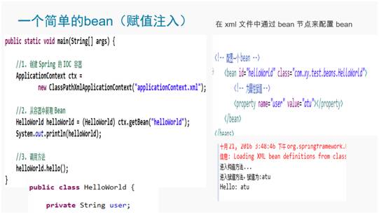 属性注入方法:属性注入即通过setXXX()方法注入Bean的属性值或者依赖对象