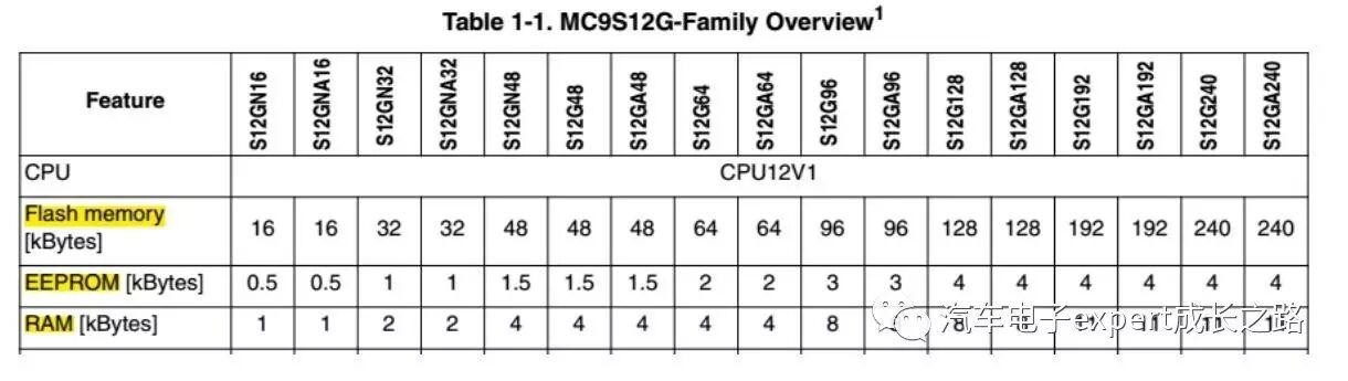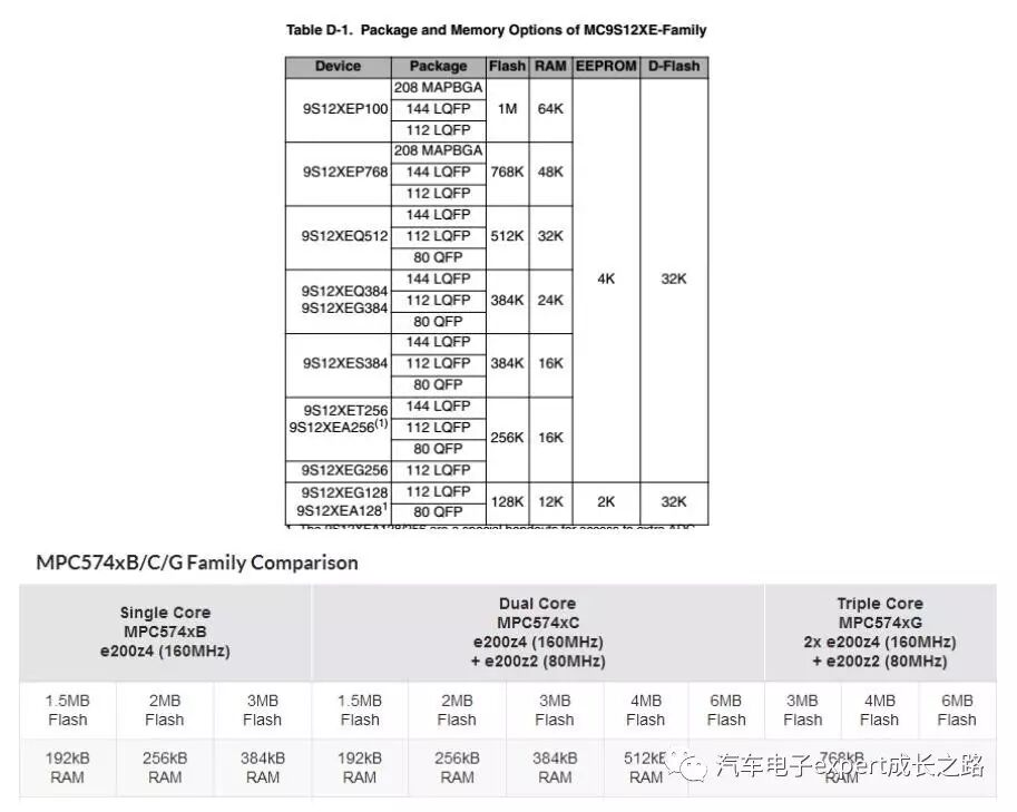 以下为Freescale S12G系列、S12XE系列以及MPC574xB/C/D/G系列MCU的片上RAM和Flash存储器资源的对比: