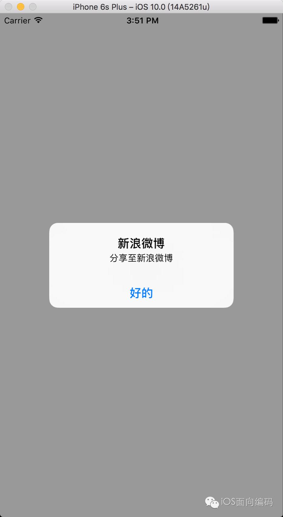 - (WeiboActivity *)weiboActivity { CAL_GET_OBJECT(_weiboActivity); _weiboActivity = [[WeiboActivity alloc] init]; [_weiboActivity setWeiboBlock:^{ UIAlertView *alertView = [[UIAlertView alloc] initWithTitle:@"新浪微博" message:@"分享至新浪微博" delegate:nil cancelButtonTitle:@"好的" otherButtonTitles:nil, nil];
