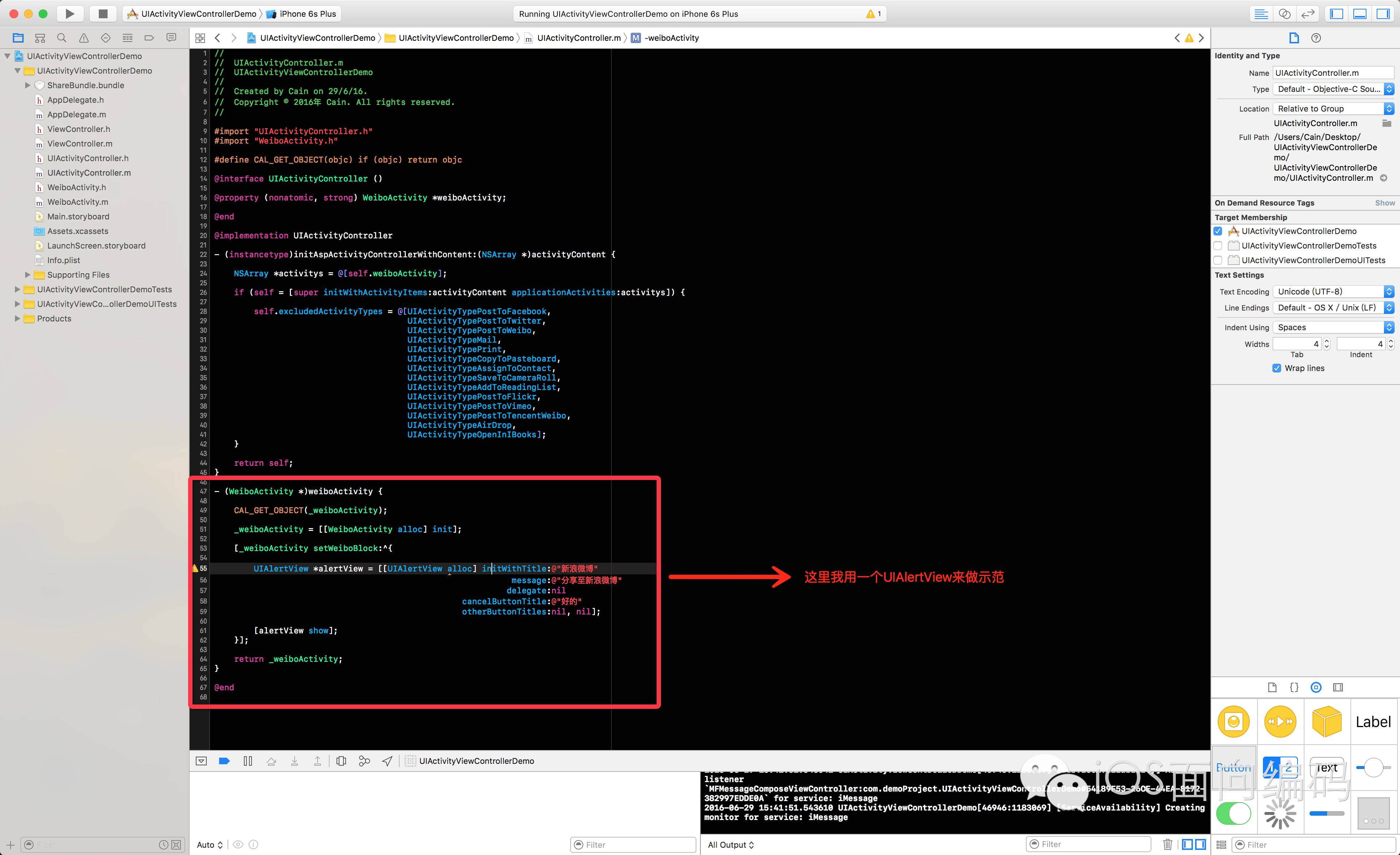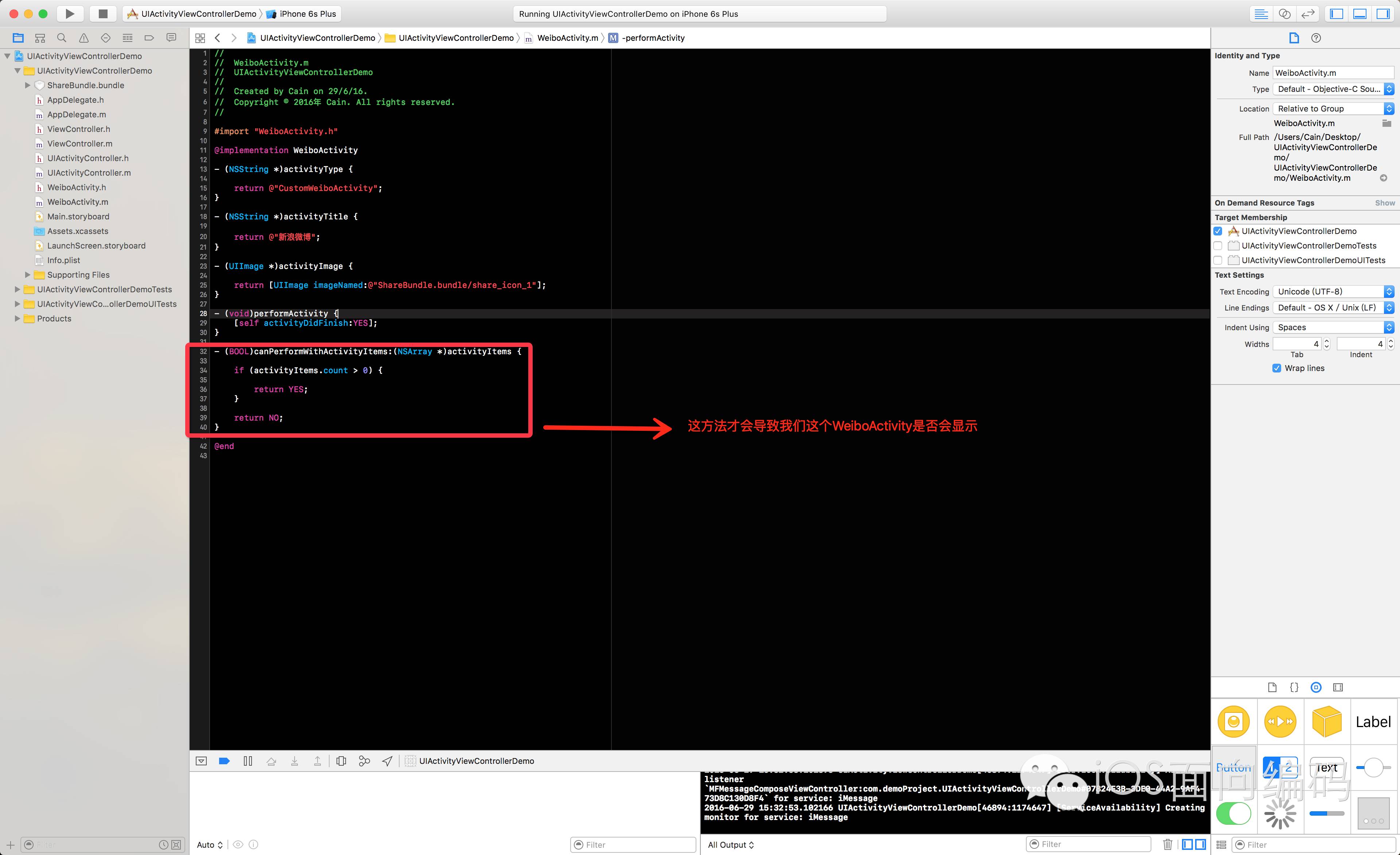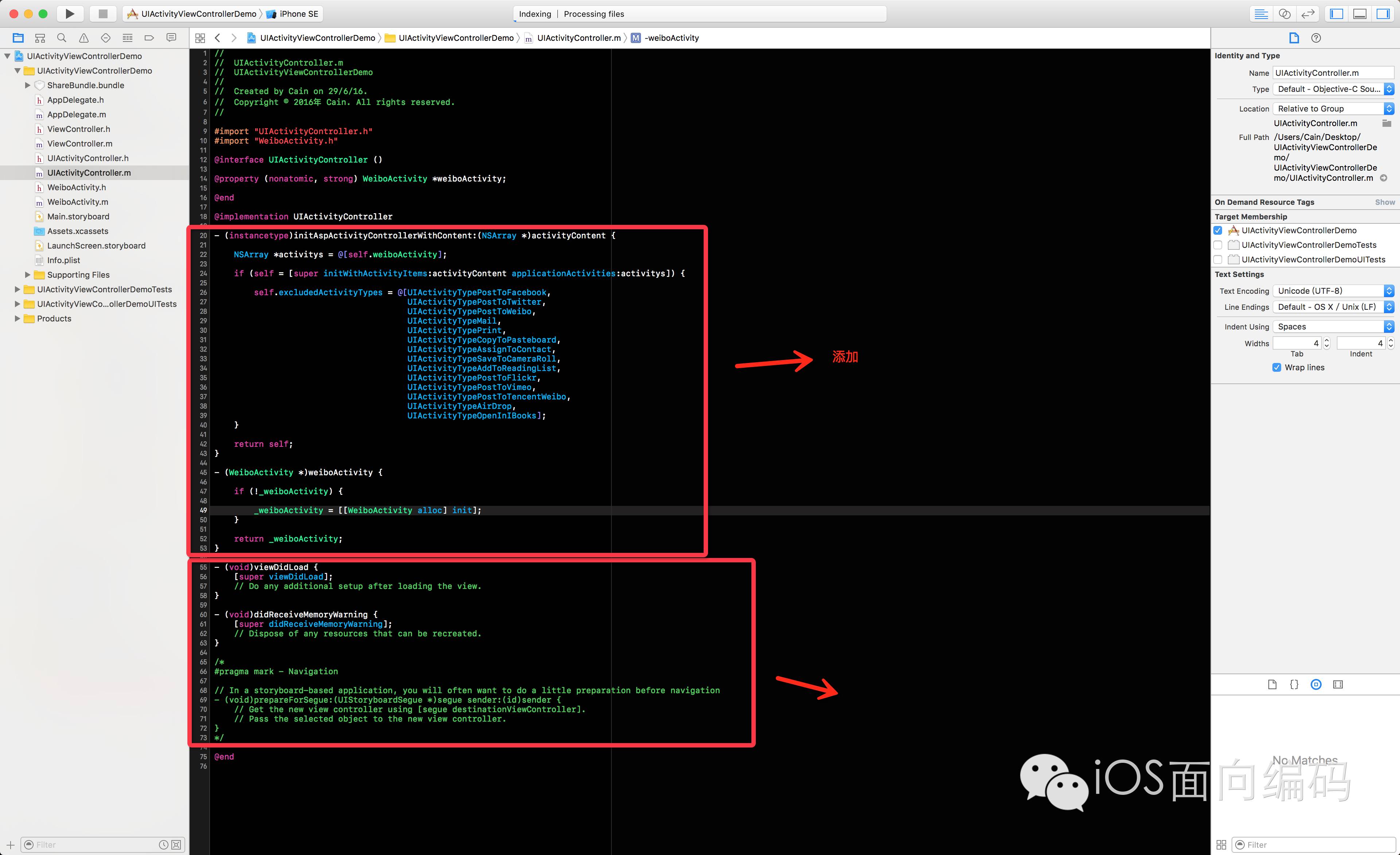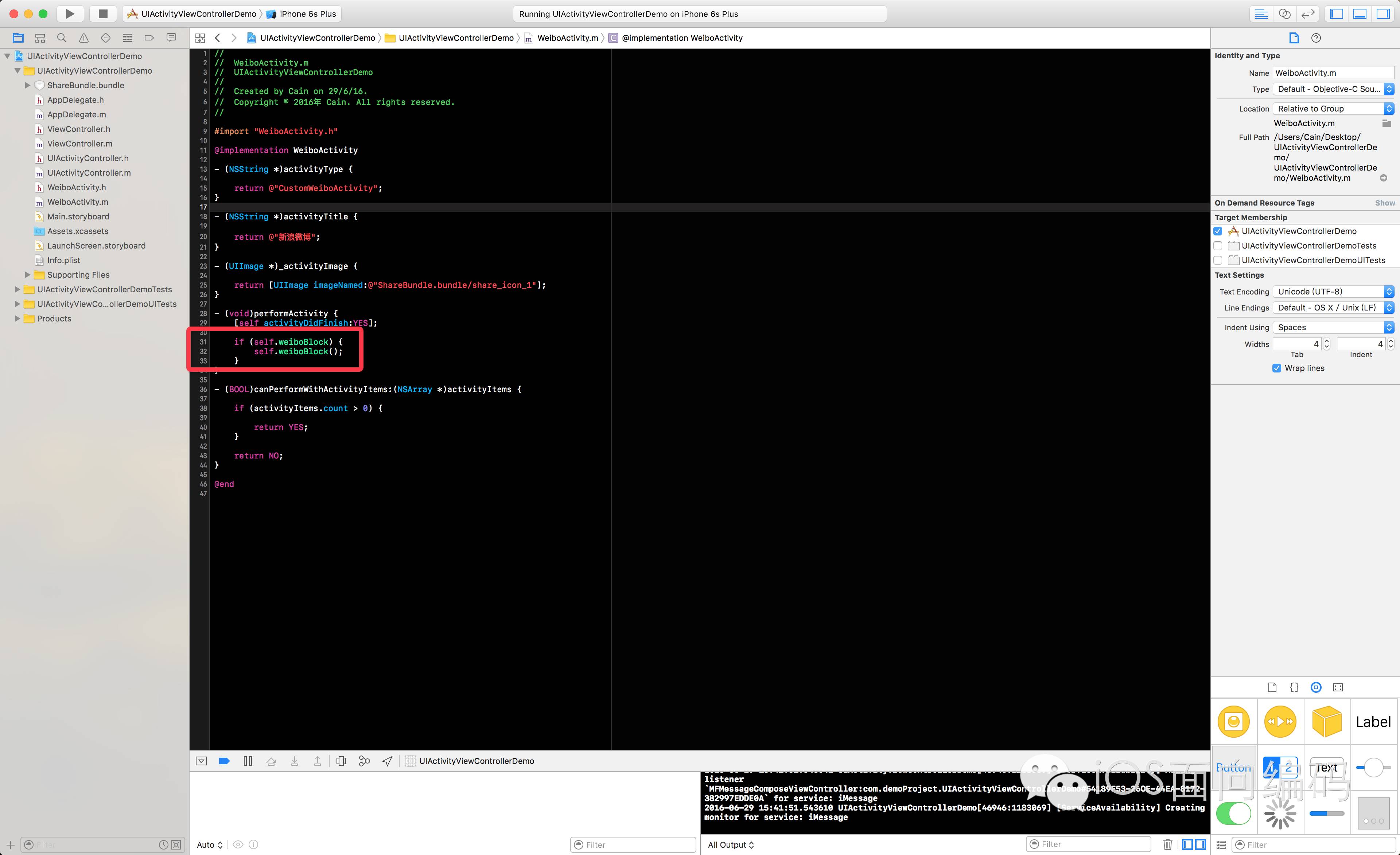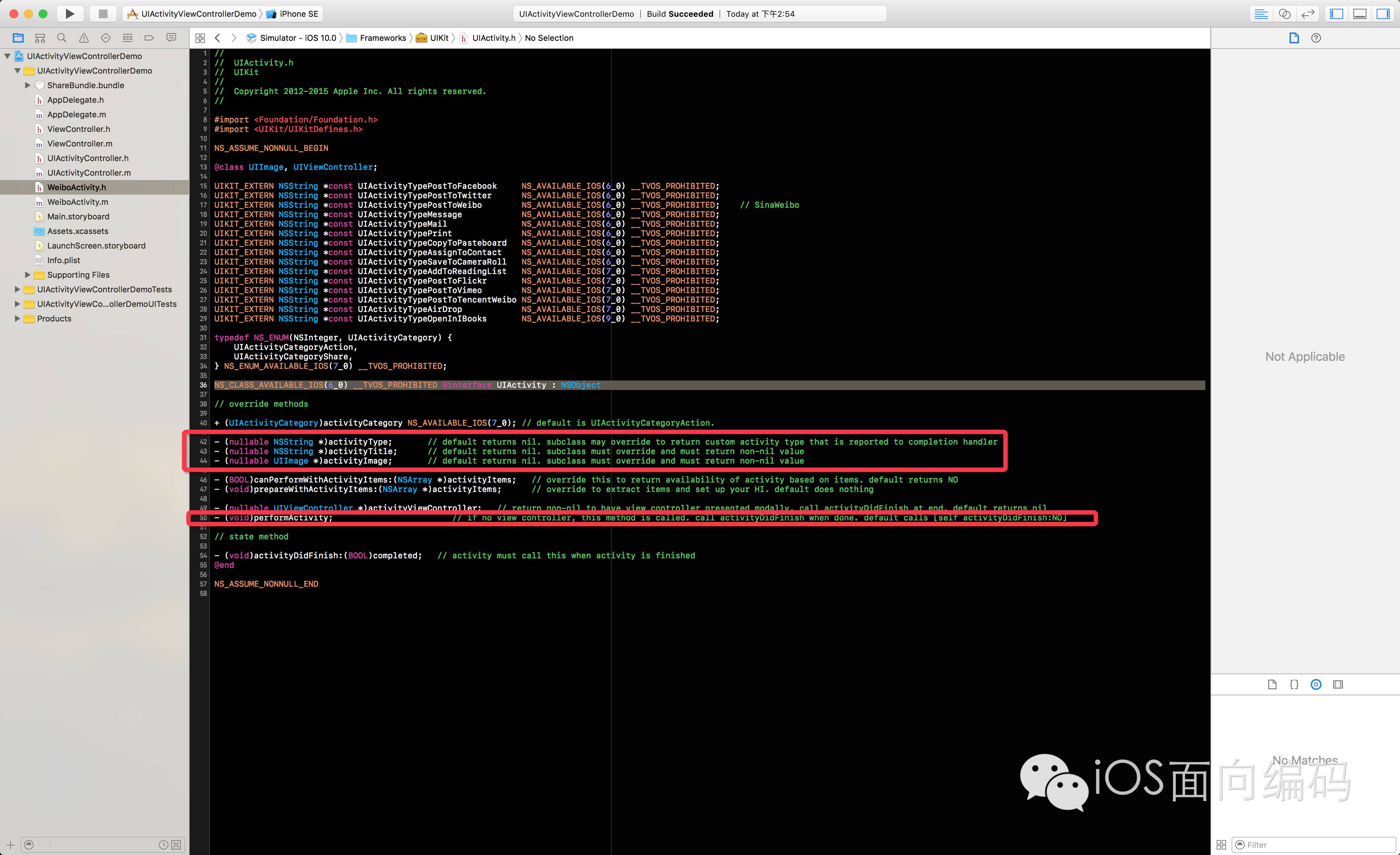 UIActivity类写上我们需要的内容, 首先我们可以去到系统提供的UIActivity头文件看API, 获取我们所需的API.