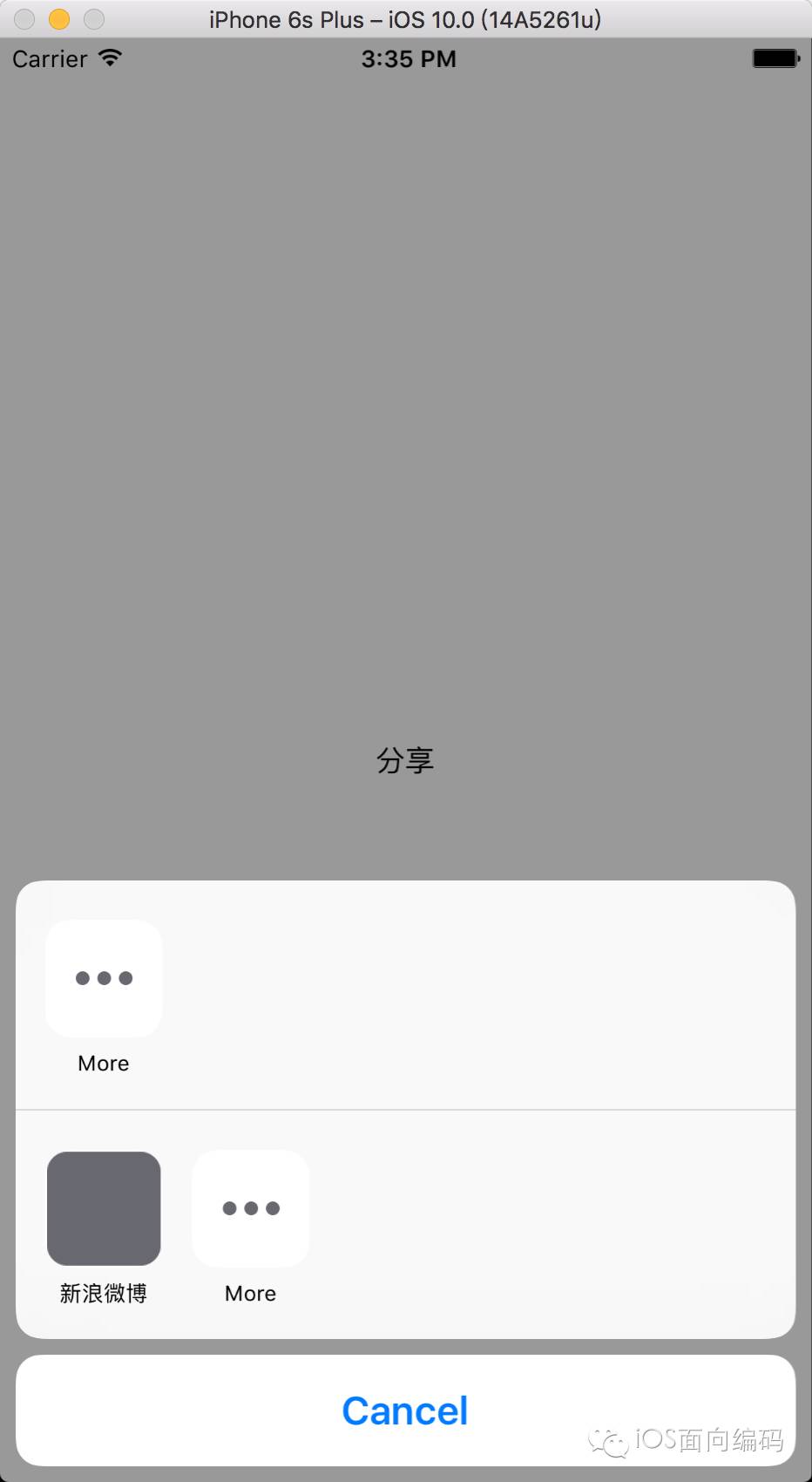 UIActivityViewController中, 下面这部分是属于系统服务, 默认只会显示一个轮廓, 并不会显示整张图片, 下面我们把自定义的WeiboActivity显示图片的方法改改就好了.