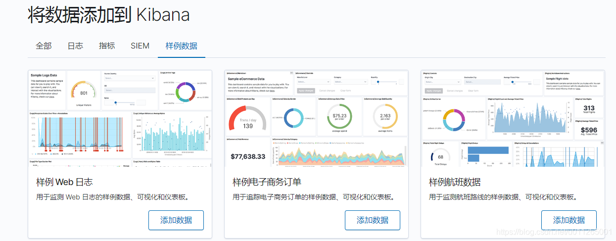 - 访问:服务器ip+端口号。默认端口号是5601。如 http://127.0.0.1:5601