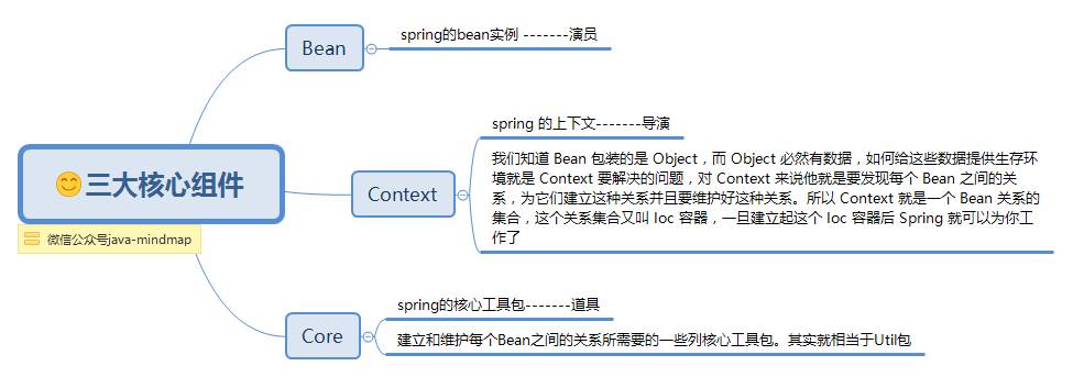 在Spring框架中的核心组件只有三个:Core、Context和Bean。它们构建起了整个Spring的骨骼架构,没有它们就不可能有AOP、Web等特性功能。