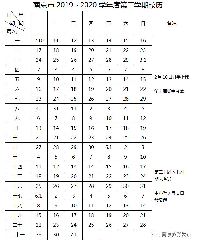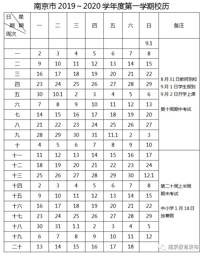 刚刚,南京市教育局也发布了2019~2020学年度校历