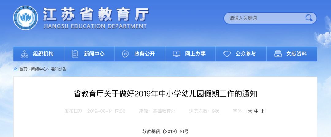 今天,省教育厅发布通知,2019年全省中小学幼儿园暑期放假时间统一为7月1日,秋季开学时间9月2日。2020年寒假放假时间为1月18日,春季开学时间为2月10日。