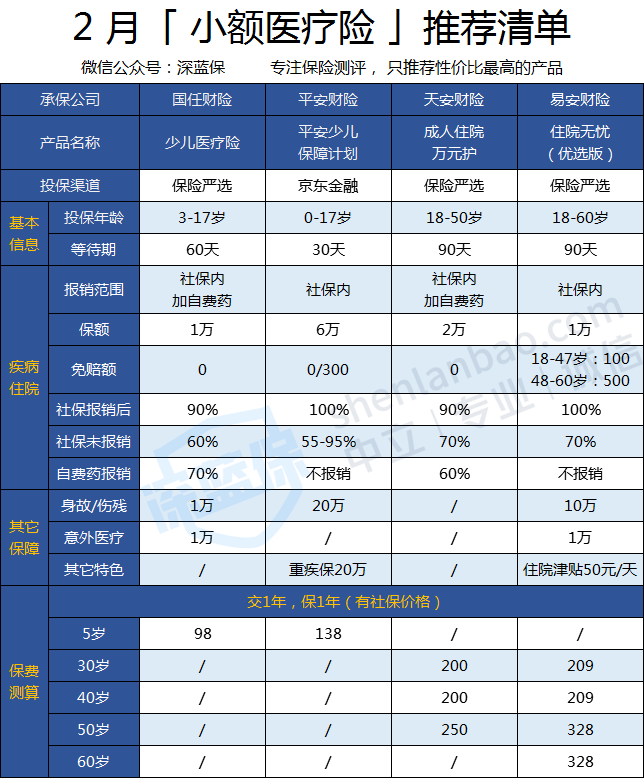 按照惯例,我每个月都会为大家推荐产品榜单,应大家的要求,这次还增加了 小额医疗险。