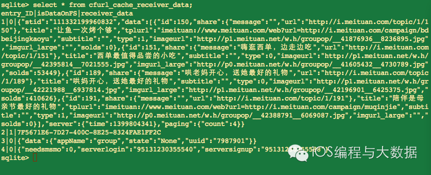 然而免费版的SQLite有一个致命缺点:不支持加密。这就导致存储在SQLite中的数据可以被任何人用任何文本编辑器查看到。比如国内某团购iOS客户端的DB缓存数据就一览无余: